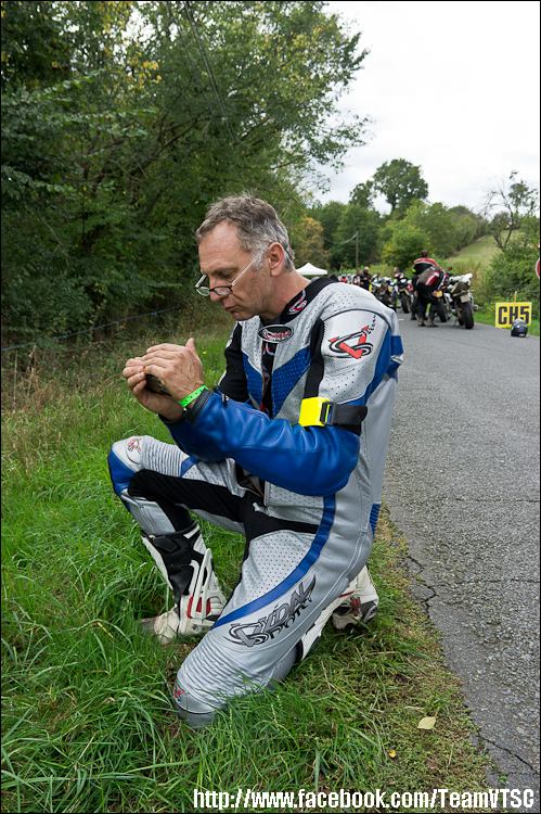 Cyril est donc parti sur du mouillé... D'autres n'avaient pas l'air plus motivé que ça pour remonter sur la moto.