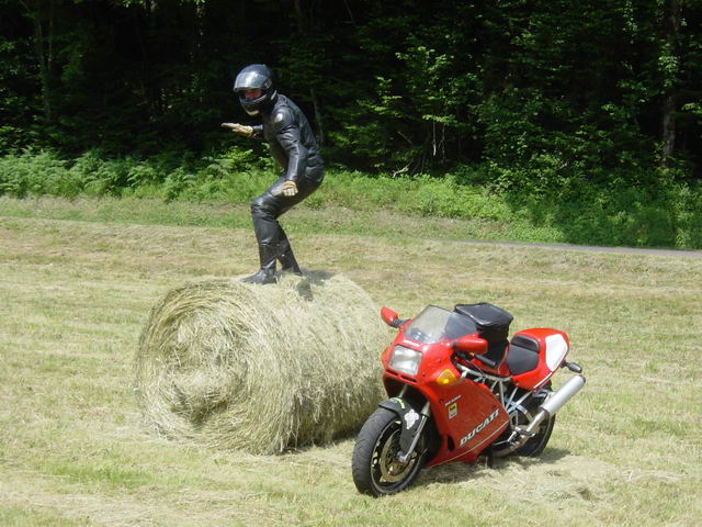 Féfé est au top de sa forme avec sa 955i à se tirer la bourre avec l'autre Triumph du groupe. Par contre le soir c'est une autre histoire et quand il s'agit de finir l'essence (le rosé en bouteille de 2 litres offert par la pizzeria) ou le Lambrusco dégueu, il y a du répondant. C'est qu'il y a des sujets sur lesquels faut pas le chercher le rosbif !